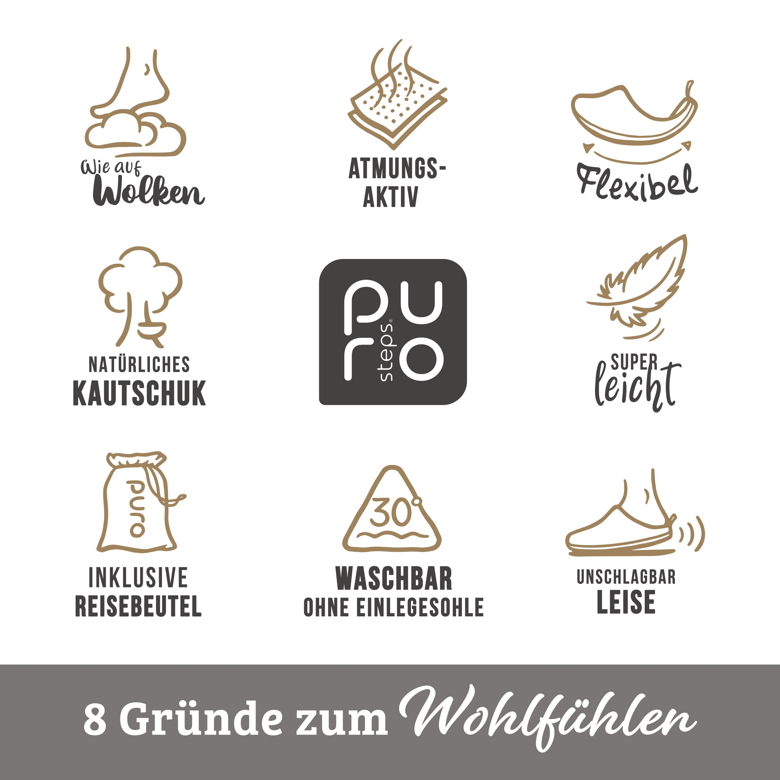 Unsere purosteps Hausschuhe sind bis zu 100% PET recycelt und vollständig aus umweltschonenden Grundstoffen. Sie sind vegan, top-designed, unglaublich bequem und dabei federleicht, super-flexibel und sogar in der Waschmaschine waschbar!