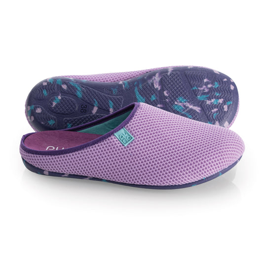 purosteps Casa-Eco-Signet Damen Hausschuhe Slipper Pantoffel Fußbett Violett-Türkis